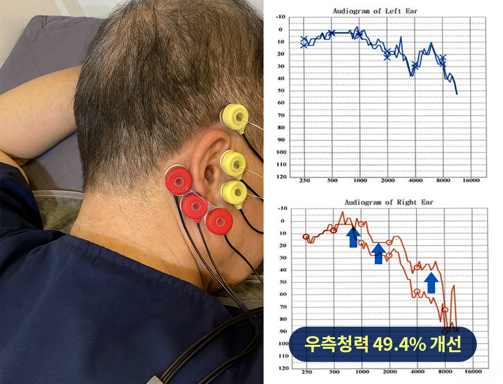 첫 3개월 동안은 매일 치료하셨고 꾸준한 치료의 결과, 한 달 만에 청력은 정상으로 회복되었고, 1년간 꾸준히 치료를 이어오신 결과, 최근에는 “이명이 거의 들리지 않는다”고 하셨습니다.
